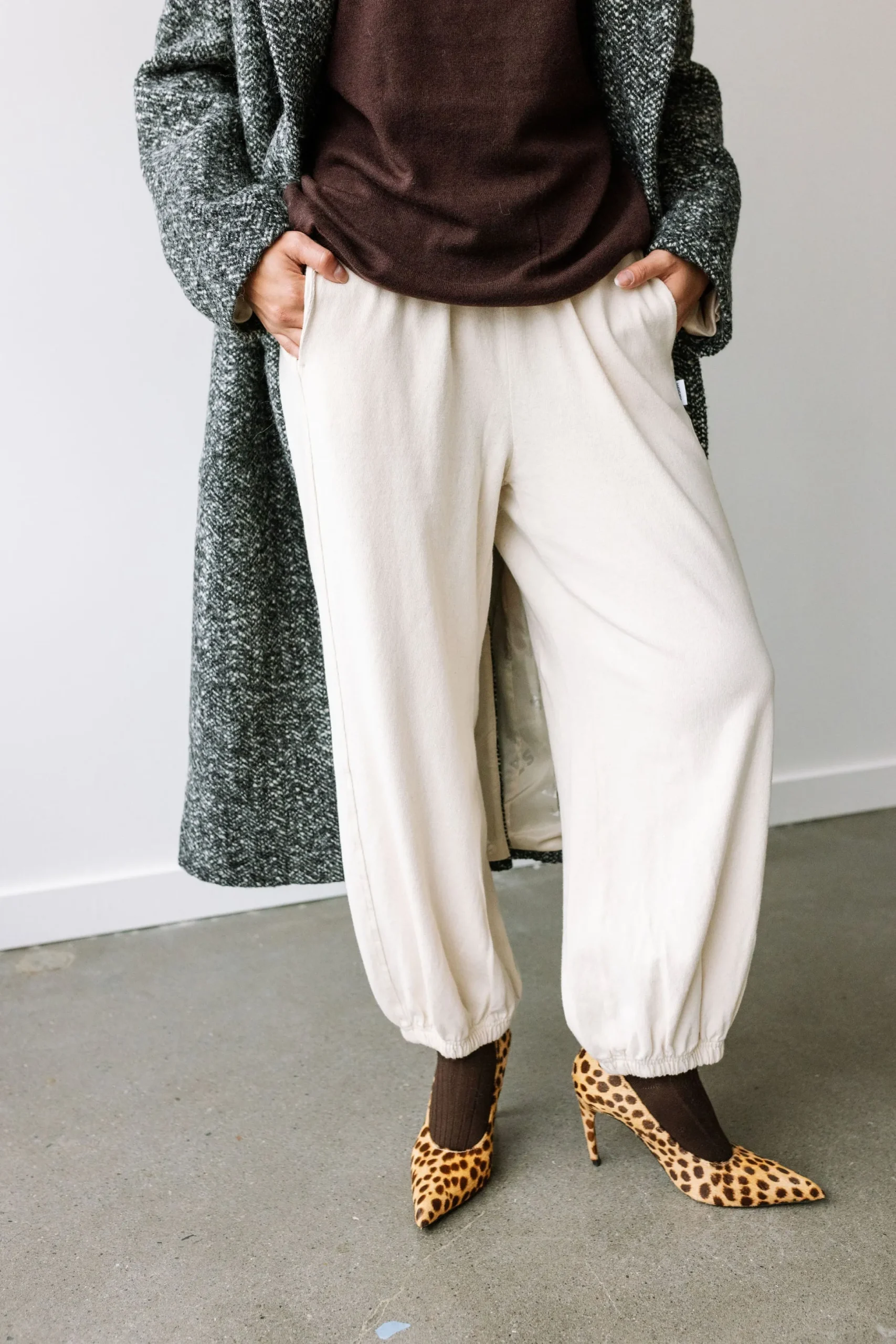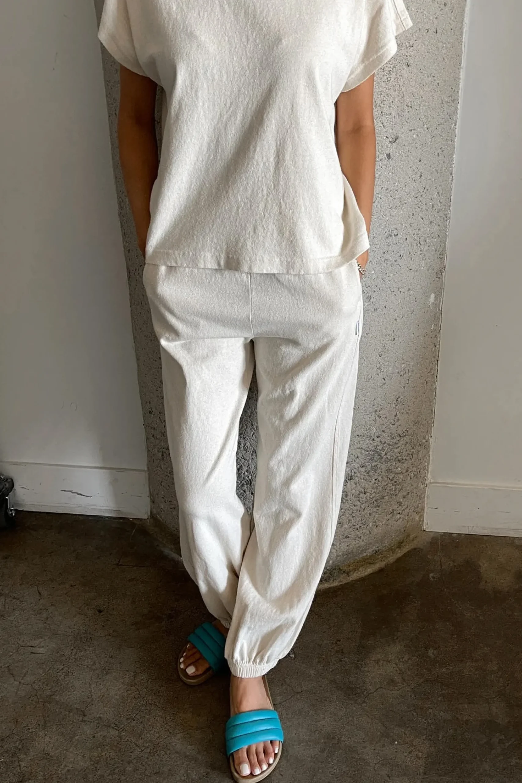 These are the pants we love to live in year round! With an elastic leg opening that pairs with any shoe, comfortable elastic high waist and side slit pockets, this will be your new uniform at home, in the office, around town and even the great outdoors. Gorgeous heavyweight 100% cotton, garment dyed and pre-washed for a rich textured look that is not see-through and does not shrink in the wash!