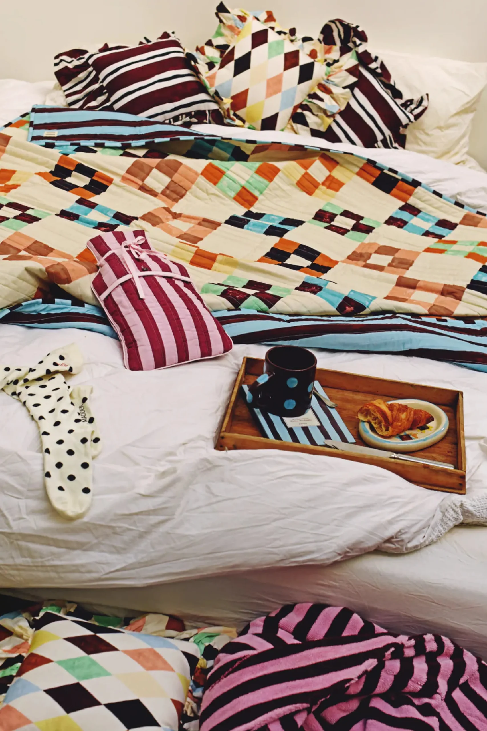 Introducing the Damson Bedding Throw, the perfect way to bring warmth and character to your space this autumn. Featuring a geometric print on one side and a stripe design on the other, this reversible throw adds a playful yet cosy touch to any room. Whether draped over your sofa or layered on your bed, it’s ideal for those snug nights in. It’s perfectly sized for sofas and beds from single to king.