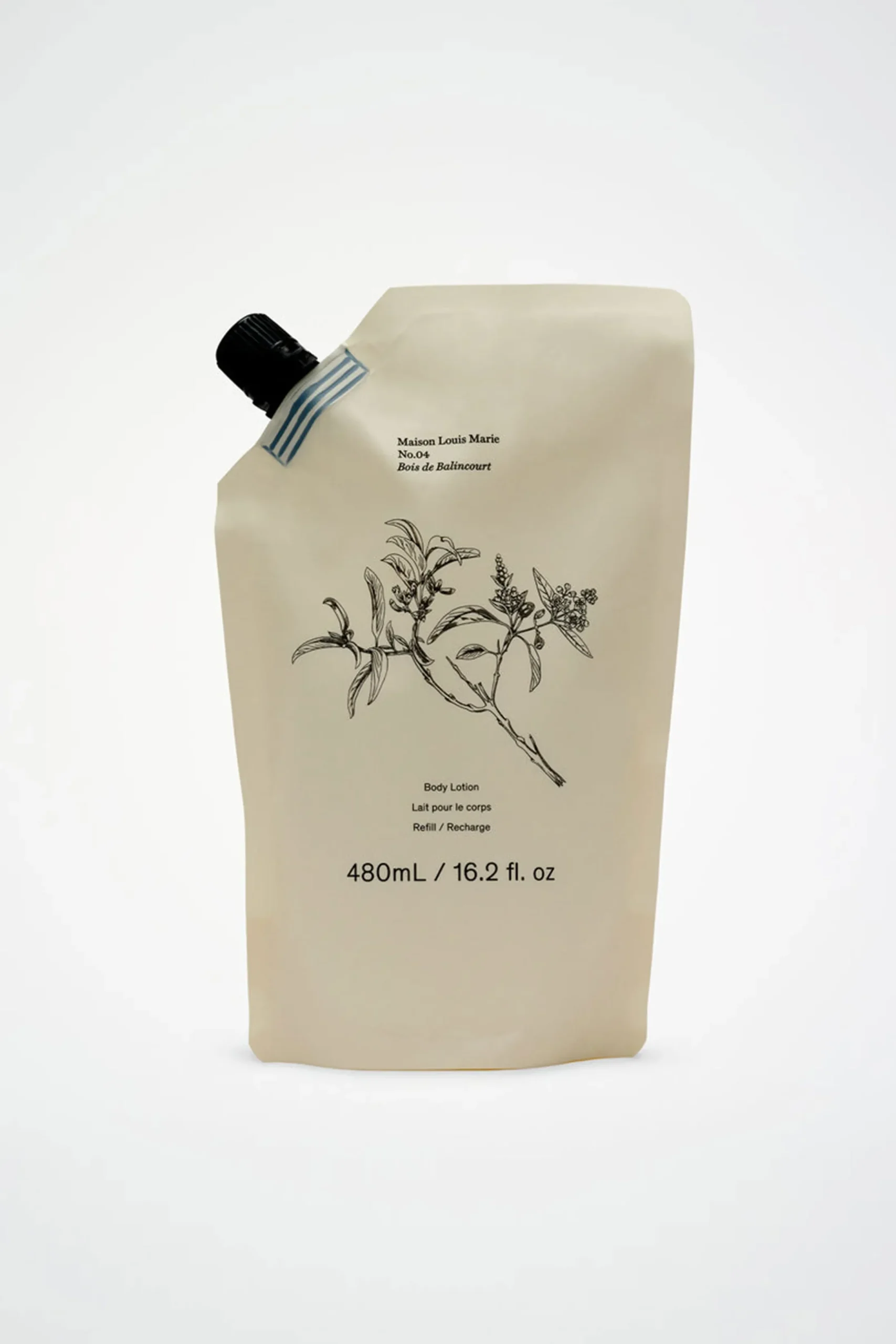 The Body Lotion Refill pouch from Maison Louis Marie allows you to continue enjoying the captivating Bois de Balincourt fragrance as part of your personal care regimen. Simply replenish your existing aluminum bottle with this refill and embrace the ongoing luxury of scent – a sustainable choice that’s kind to the environment.