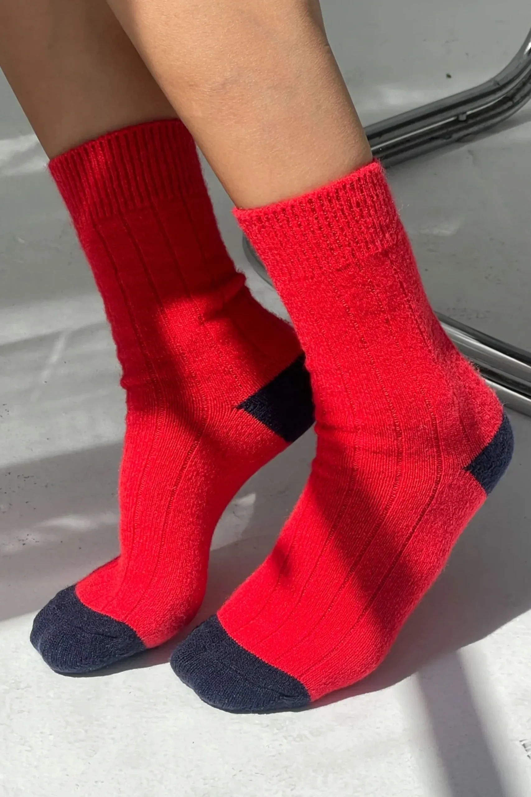 A Cashmere blended socks with a wide ribbing detail and tonal contrasting heel and toe. Classic Cashmere Socks is a revival of a more antiquated style from days of tailored clothing and fresh milk bottle deliveries at dawn.