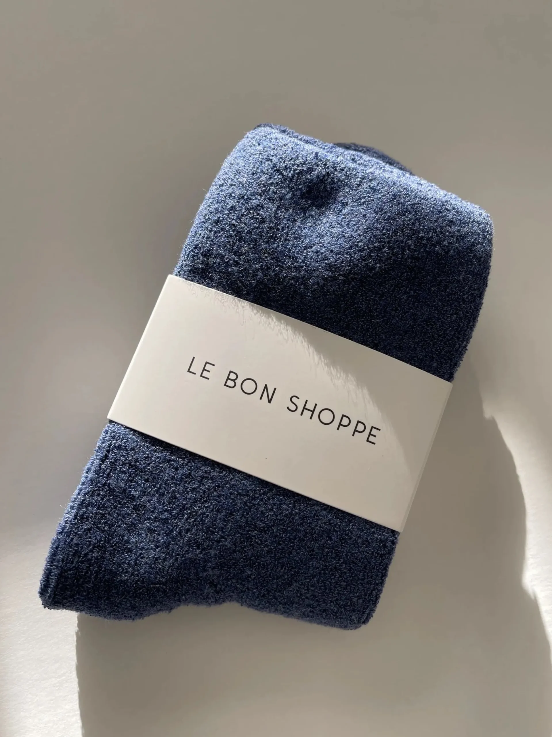 The coziest, comfiest, cutest Le Bon Shoppe socks around! These super soft and cushiony Cloud socks will eponymously make you feel like you are, well, walking on a cloud! Use them like slippers around the house, or with your favorite boots or roomy sneakers.