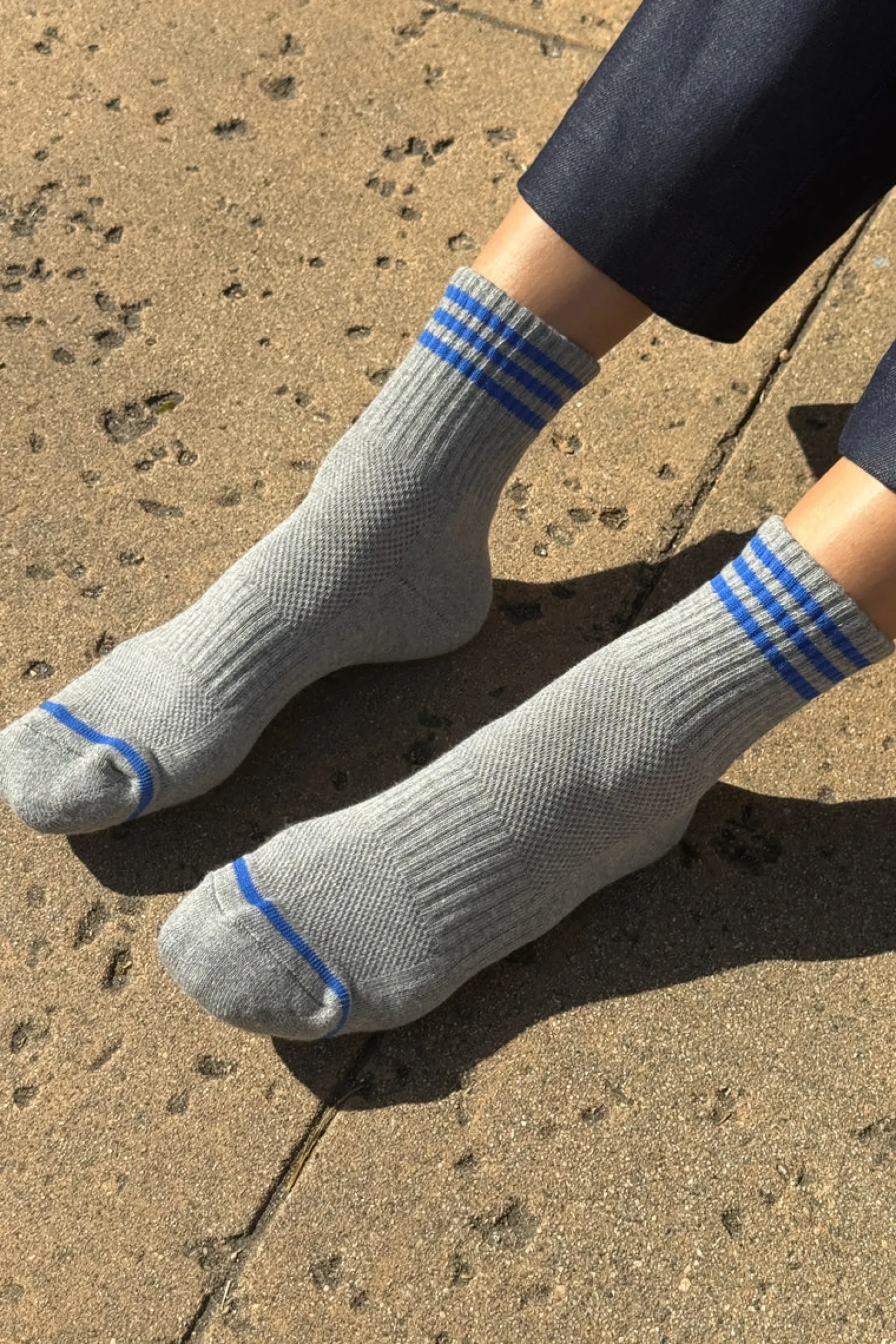 A little sister sock to the much loved Le Bon Shoppe Boyfriend socks. A true crew with all the same vintage inspired details – super soft ribbed cotton in avocado with contrast stripes. We love pairing these guys with our cropped pants and sneakers for a shorter look. Available in additional fun colors too.