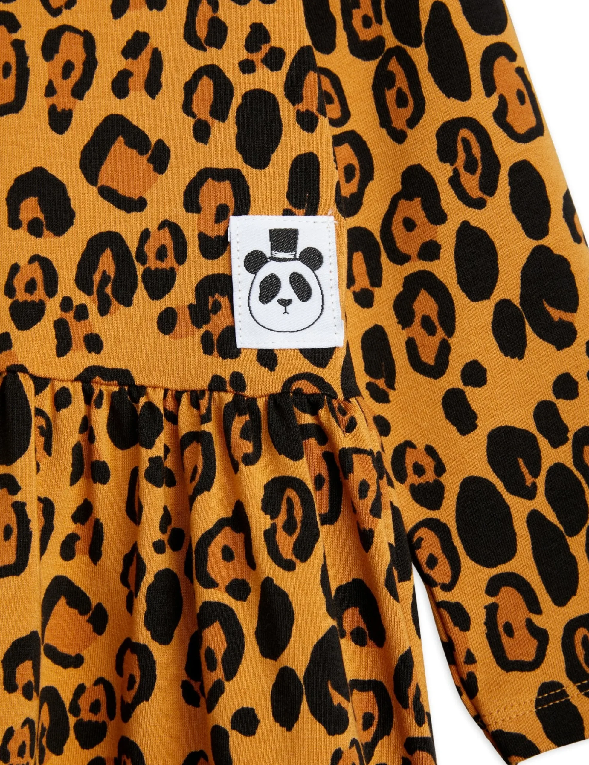 Leopard printed long sleeve dress, made in soft TENCELâ„¢ Lyocell with a hint of stretch for comfort. Featuring a sewn-on Mini Rodini Panda label at the front. The dress is designed with a high waist and a flowy skirt.