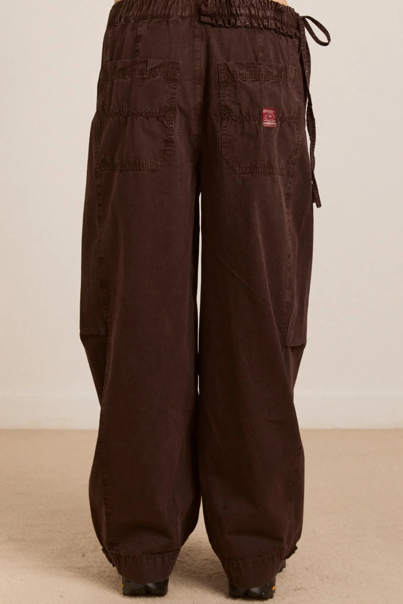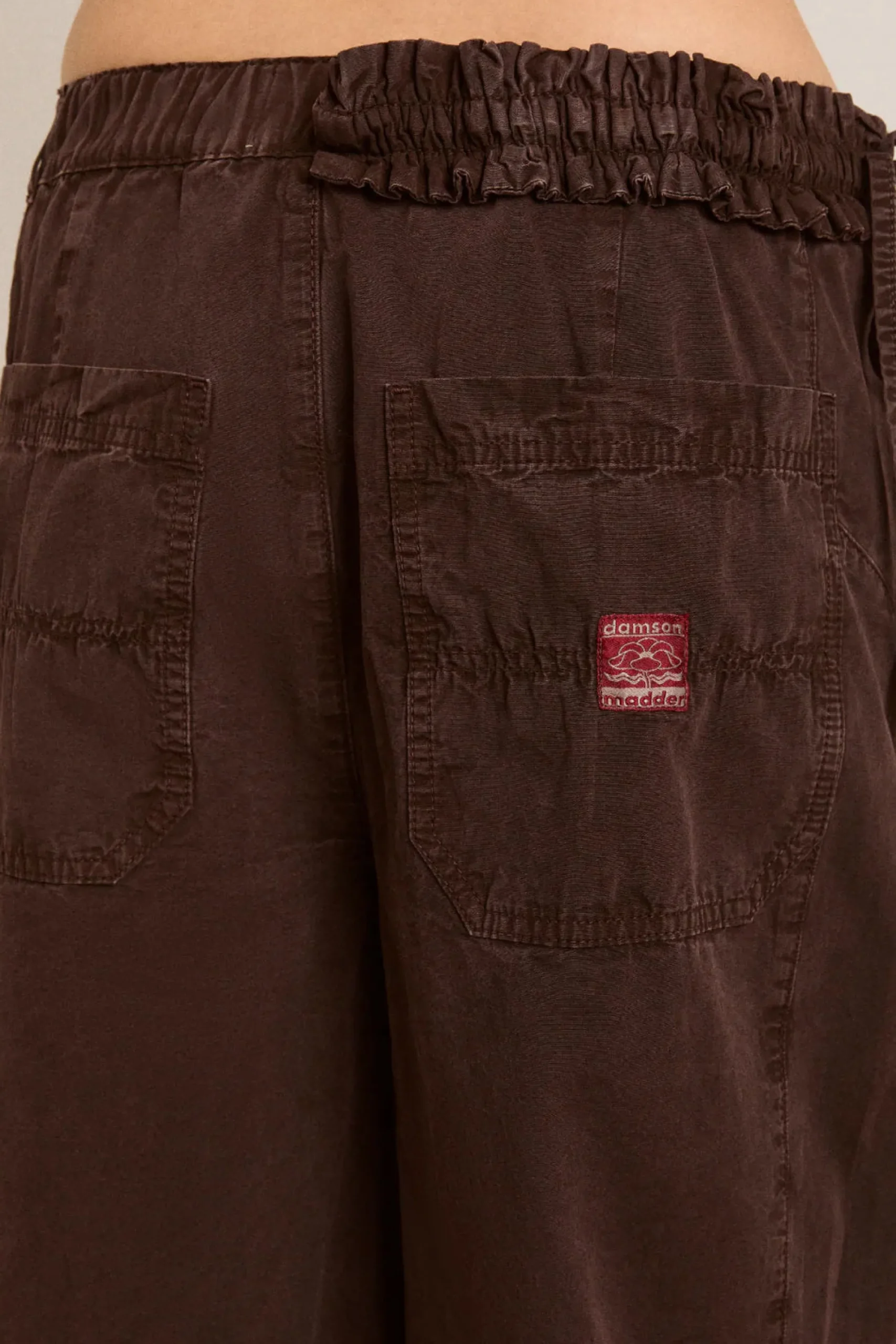 The Liv Trouser in Coffee Bean features a full-length, baggy barrel leg with a relaxed feel and soft organic cotton fabric. Detailed with a ruched frill at the waistband, twisted seams through the leg, and a zip fly with button closure. Designed for easy, everyday wear, pick your usual size.