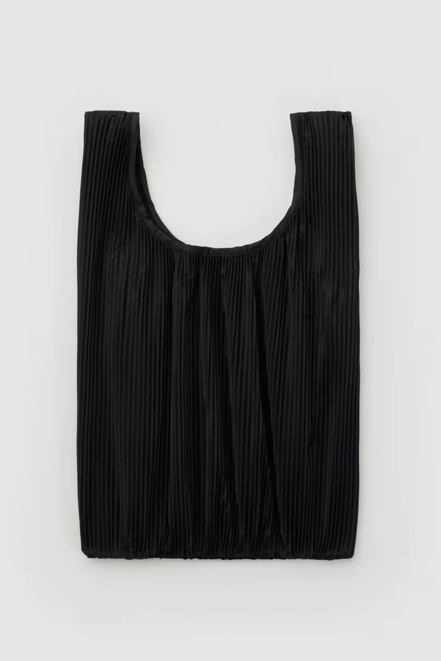 A special, pleated version of the classic Baggu shape that can be worn as a dressier, fashion forward catch-all bag.