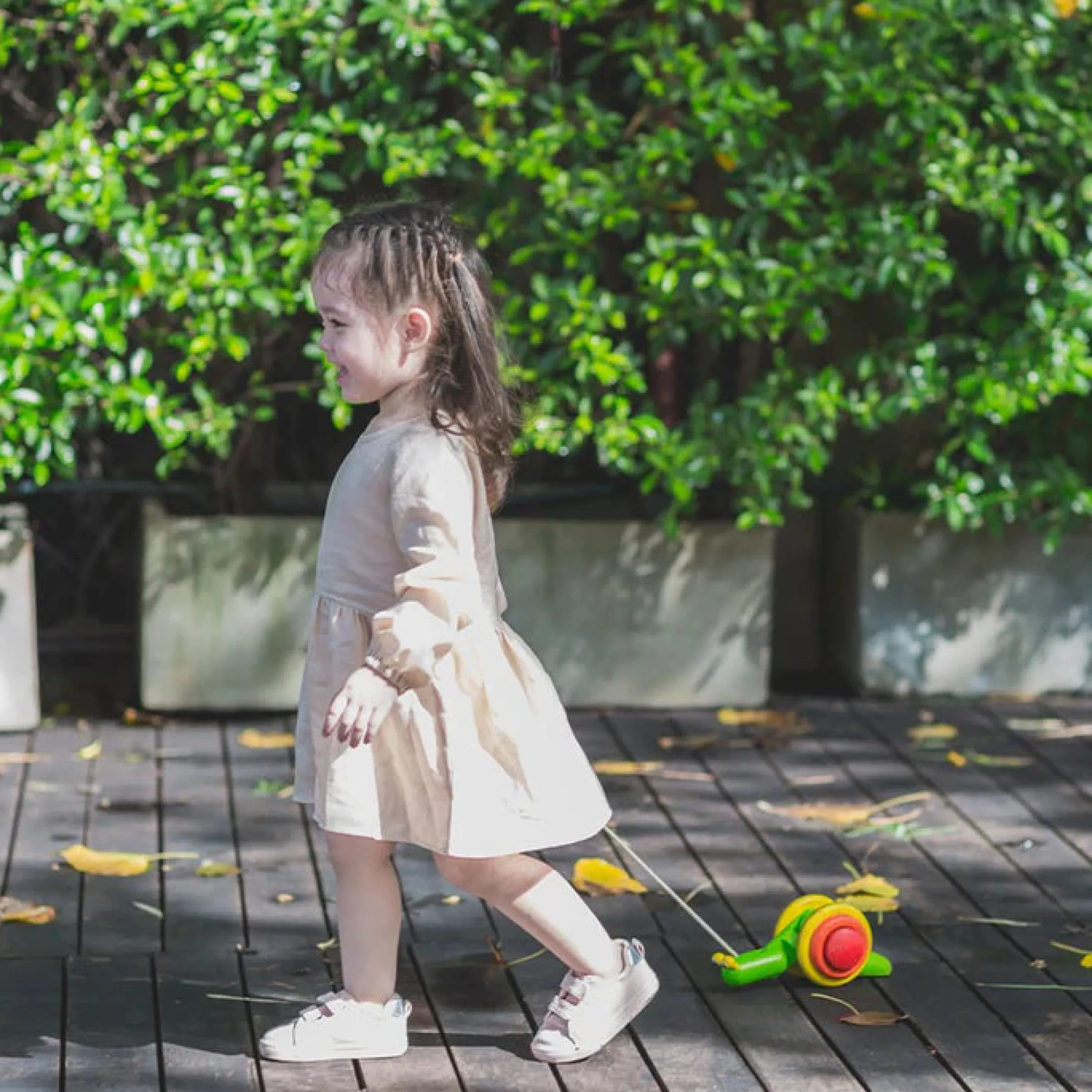 - Both balance and coordination are developed as children practice walking and adventuring on their own while pulling the snail along.