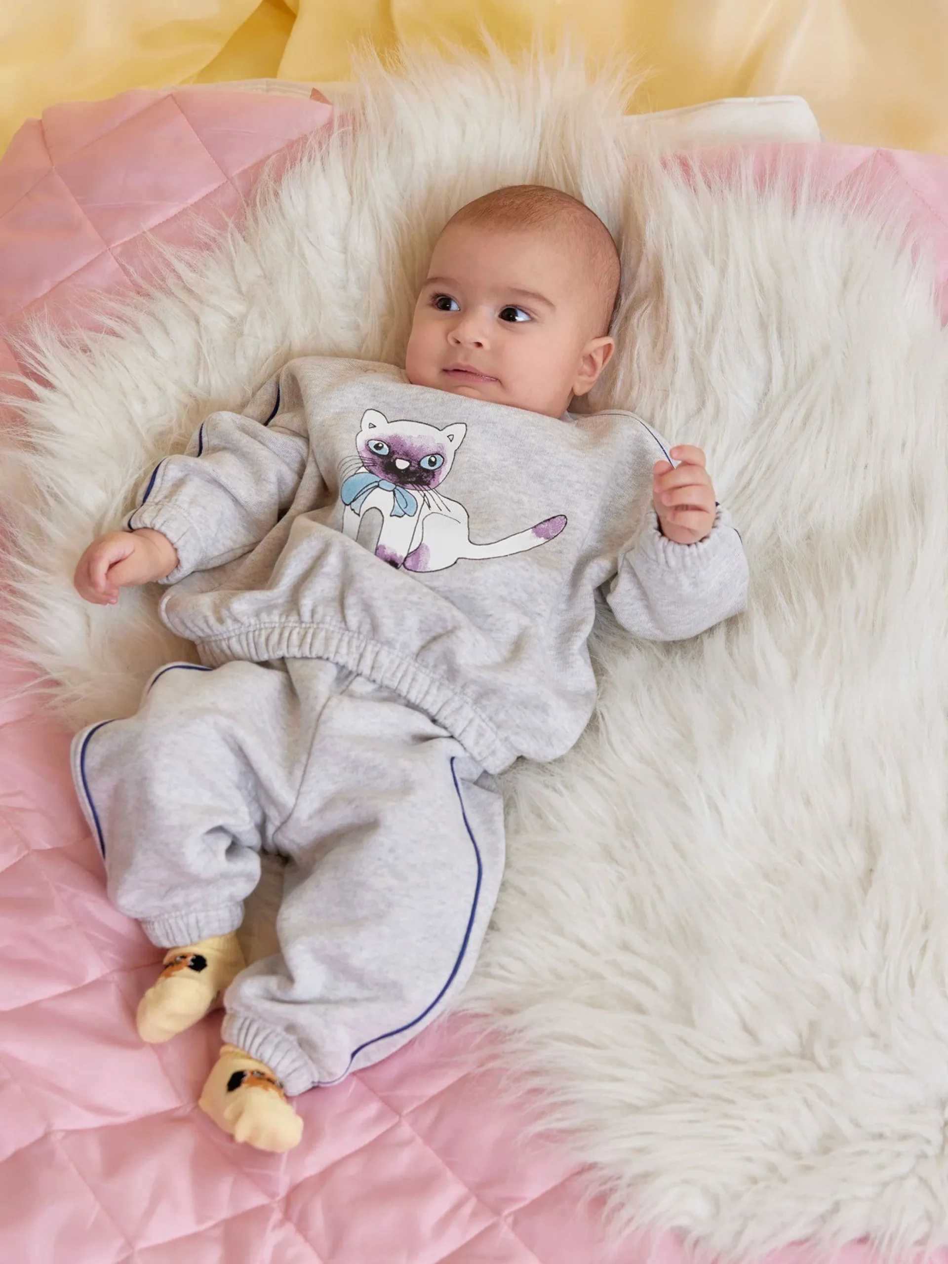 Sweatshirt with a large siamese print, made from 100% GOTS certified organic cotton. Designed for a relaxed fit with dropped shoulders, finished with a ribbed collar, elastic trims and contrasting piping.