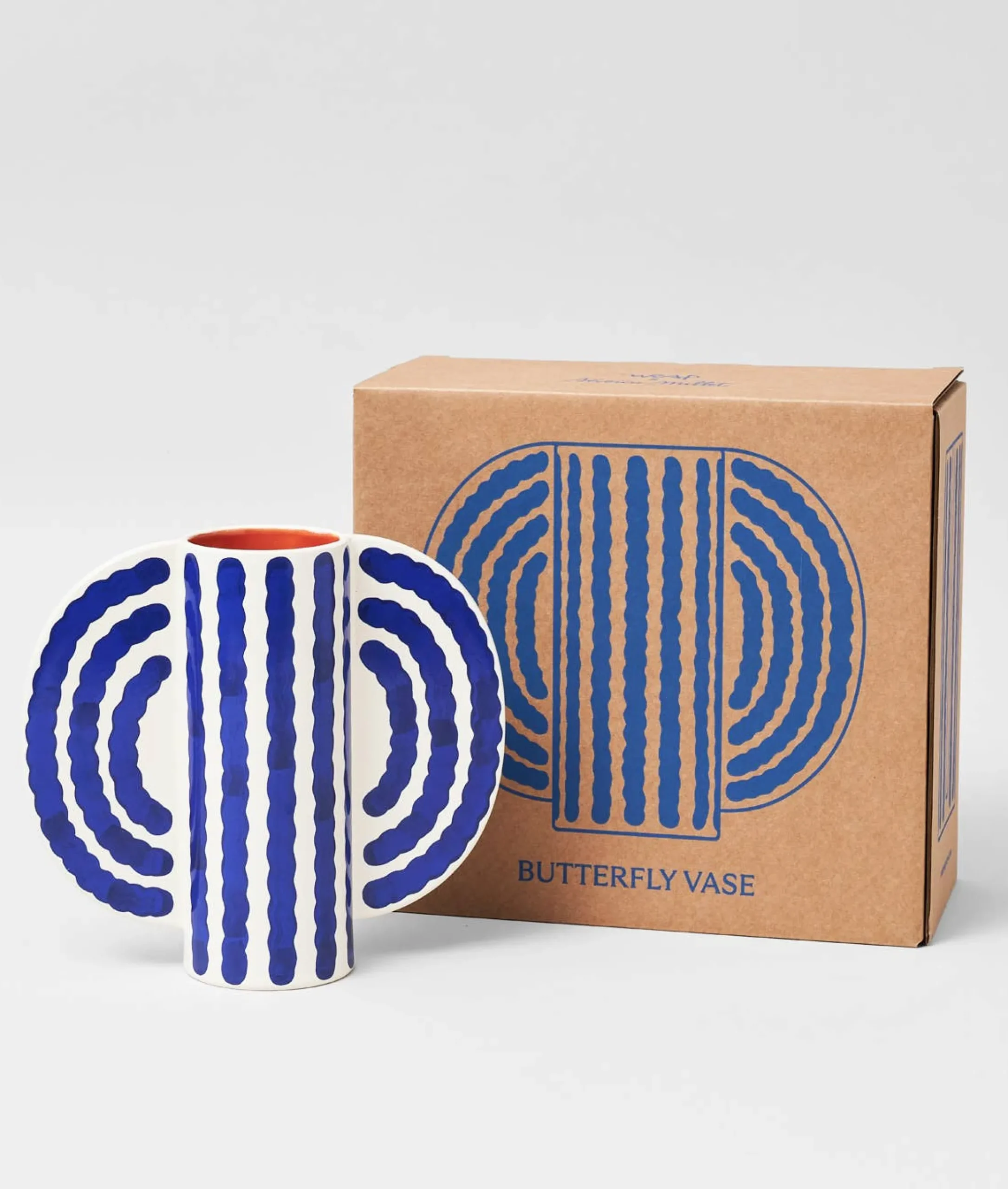 An exciting new collaboration between Wrap and French artist and illustrator Séverin Millet – a series of six ceramic ‘Butterfly’ vases designed by Séverin in his distinctive style, and expertly produced in Portugal exclusively for Wrap.