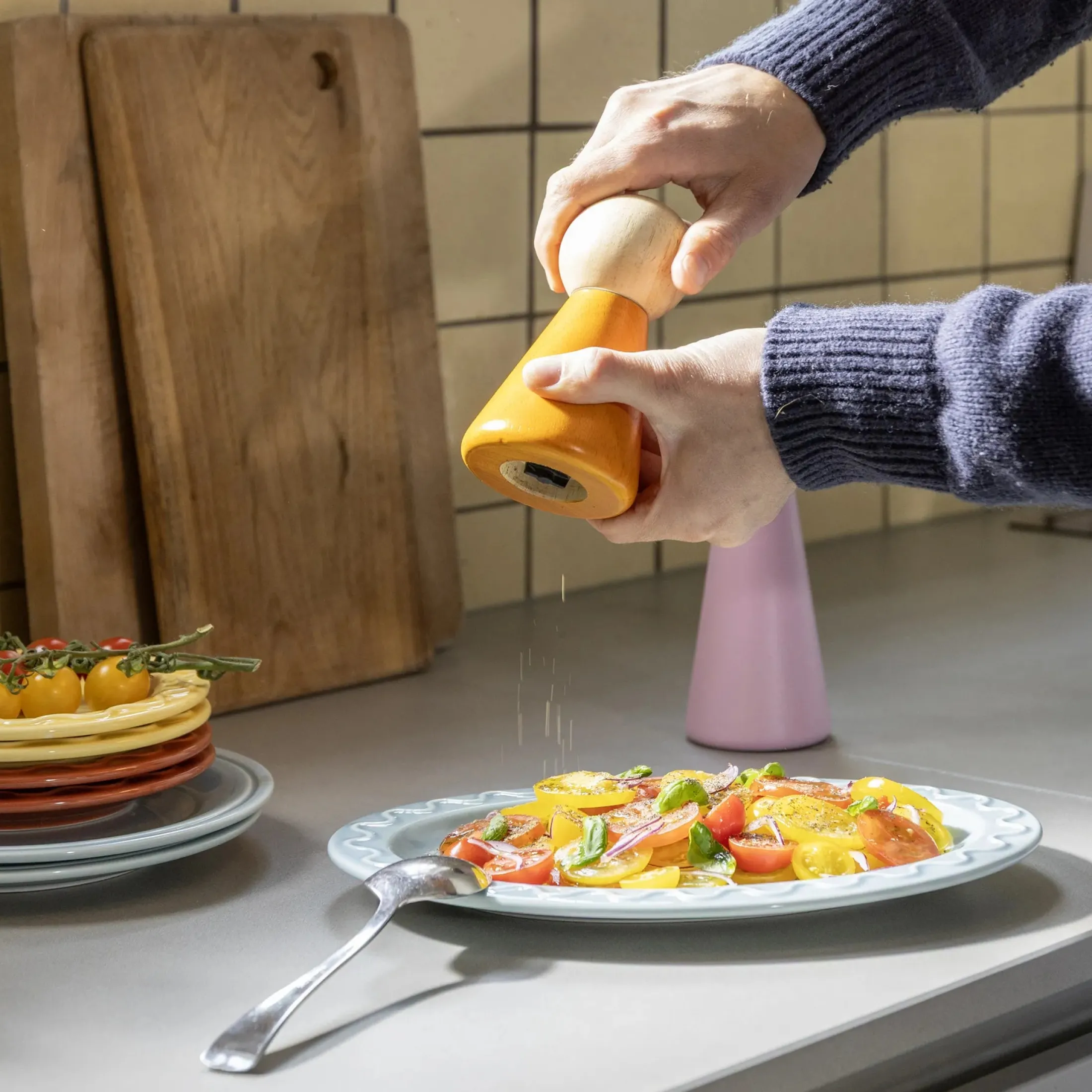 Add playful elegance to your kitchen with the salt & pepper halma mills. Inspired by traditional wooden game pieces, these mills come in four coordinated colors and two sizes. Crafted from FSC-certified rubberwood with a durable ceramic mechanism inside, each mill can be used for either salt or pepper. The colors are applied using a stain that subtly reveals the natural wood grain, then finished with a clear, food-safe lacquer. Create your own charming, vibrant set that’s as fun to use as it is to display.