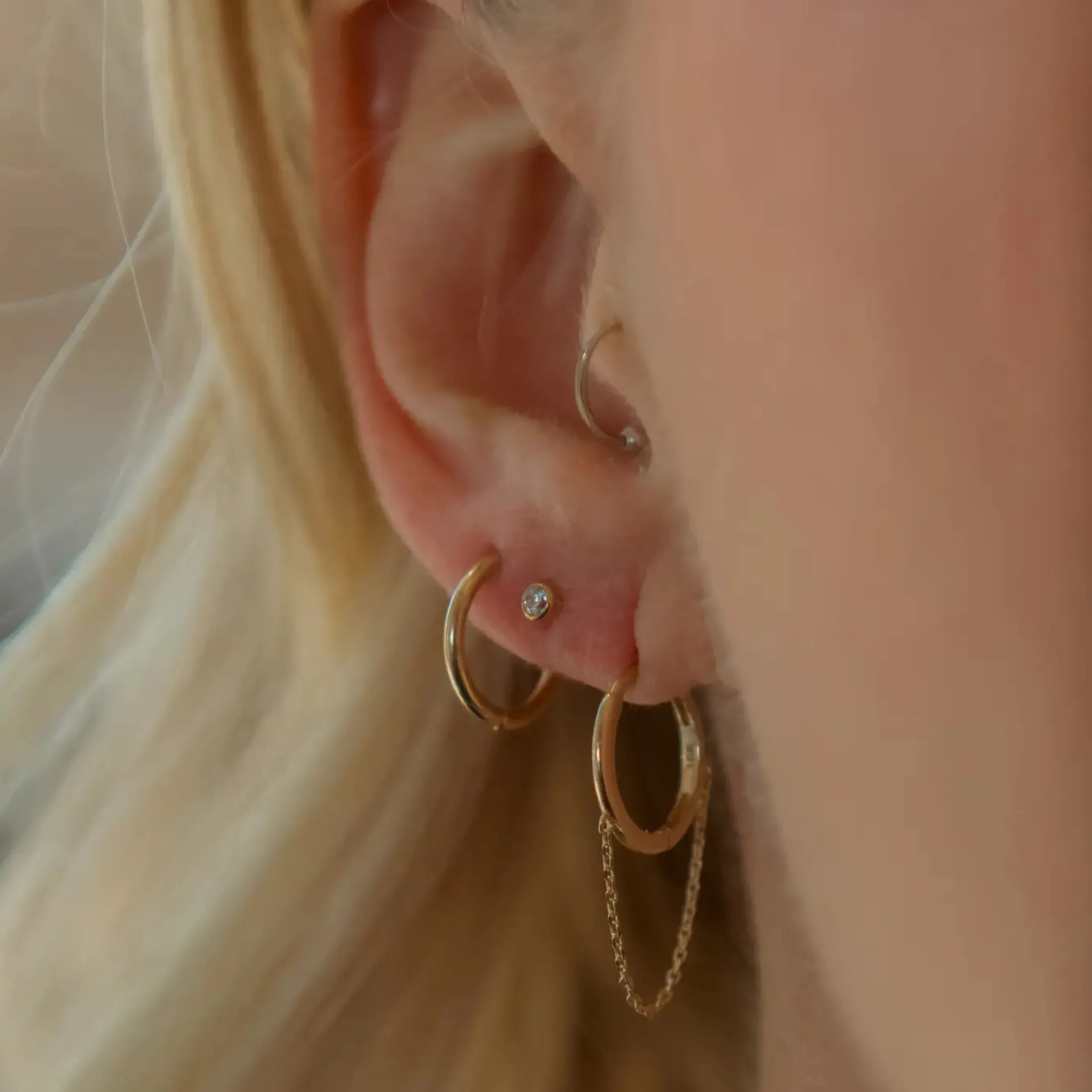 Add some pizazz to your looks with this huggie chain earring.