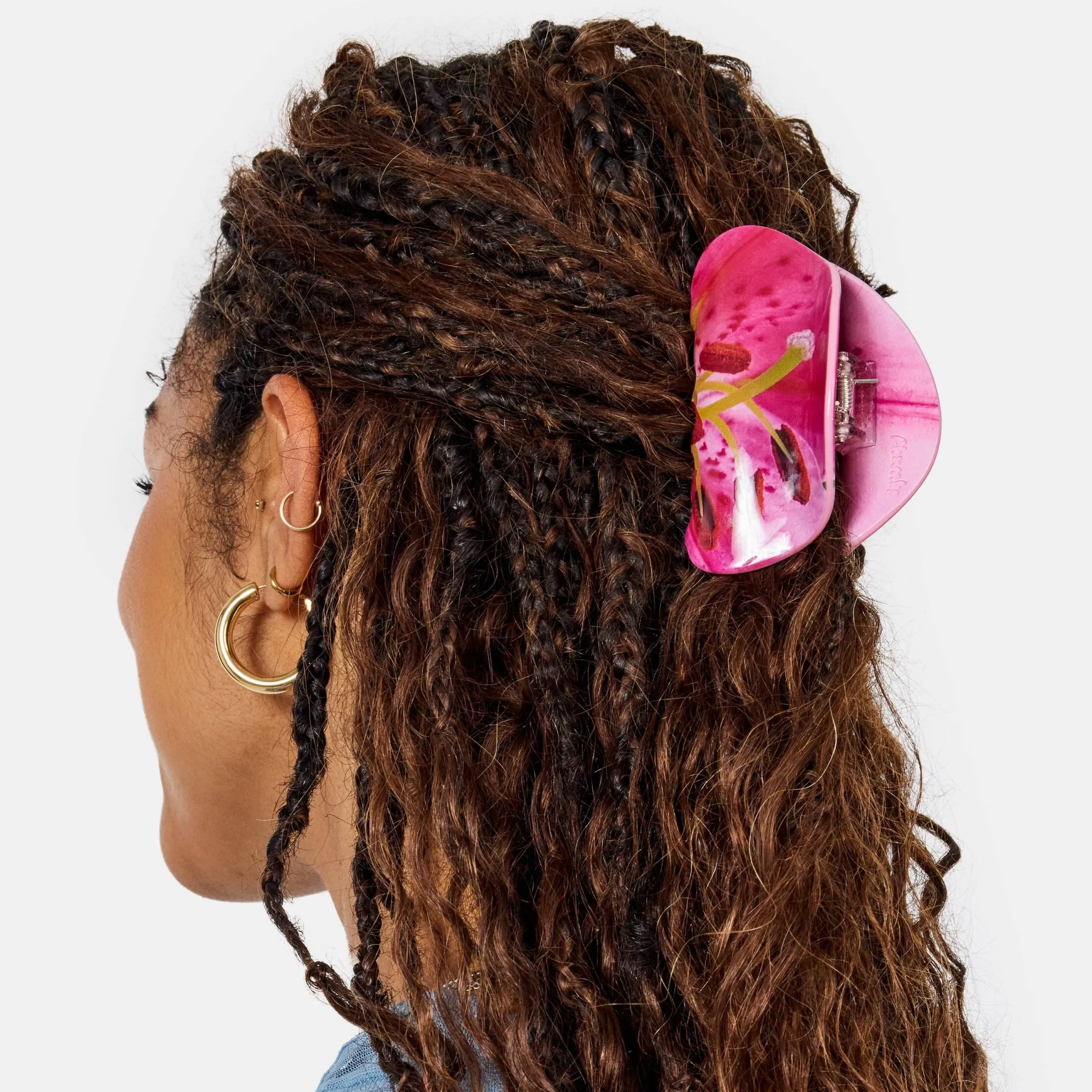 This medium sized hair claw is super versatile and works for all hair types and textures. Made from high quality acetate; a durable, plant based bio-plastic. Slight variations will appear with pattern, color and form due to the handmade nature of the product.