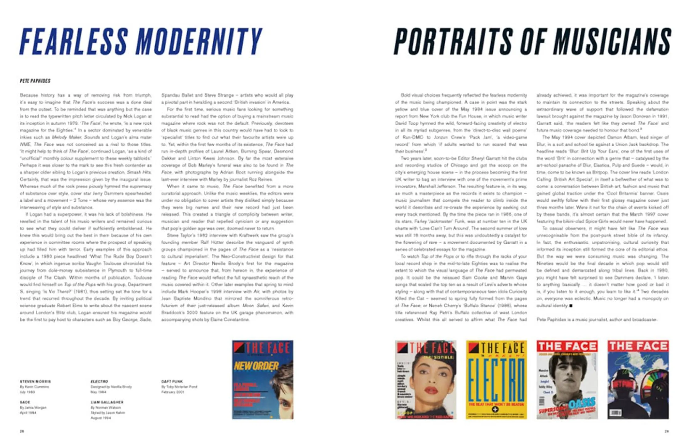 Groundbreaking British youth culture and style magazine The Face established the careers of generations of photographers, journalists, designers and models. Founded in 1980 in London by English journalist Nick Logan, it is known for its distinctive, radical and of-the-minute design and its unflinching attitude.