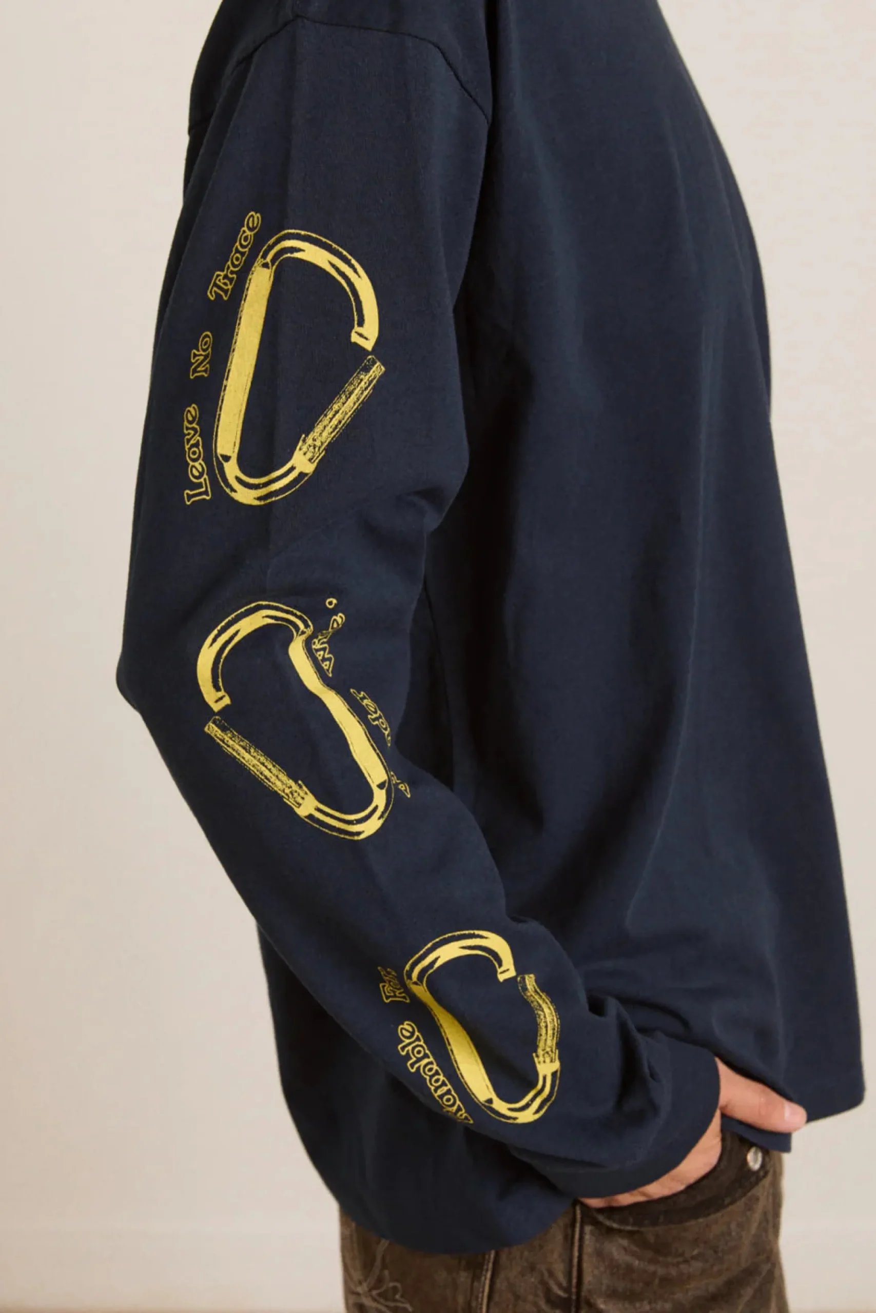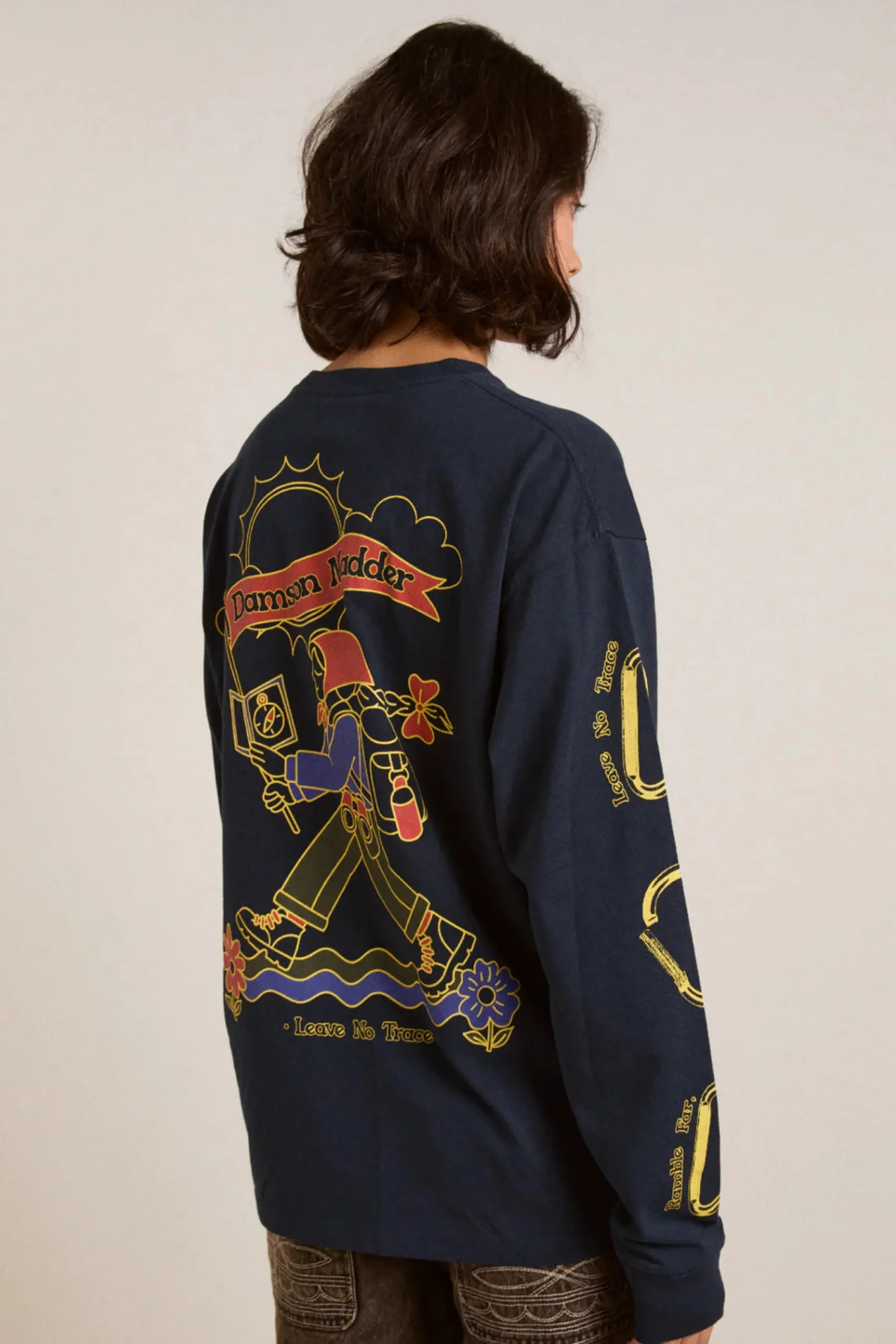 Crafted from 100% organic cotton, our Rambler Navy Long Sleeve Tee is the go-to piece you’ll reach for every day. Designed with a relaxed, oversized fit, this top features thoughtfully placed graphic prints on the front and back for a playful touch.
