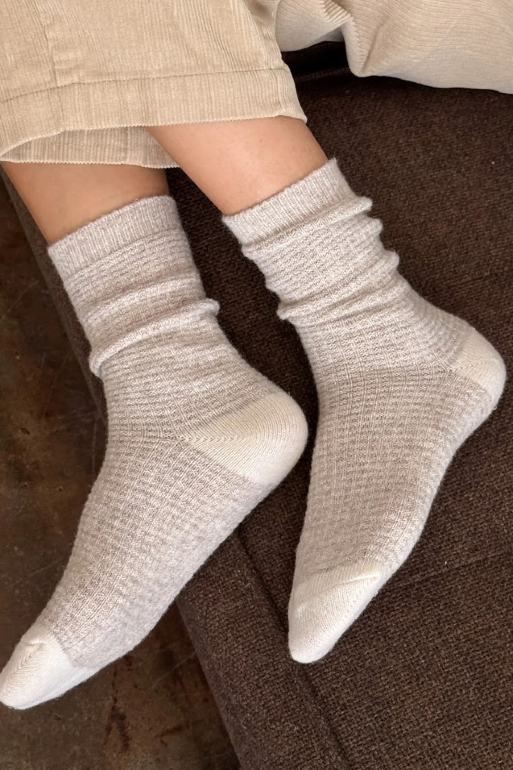 Meet the Wool Waffled Socks. A cozy essential with a lived-in feel, like a favorite pair you reach for again and again. Features a warm wool blend with a textured waffle knit and finished with a contrast toe and heel.