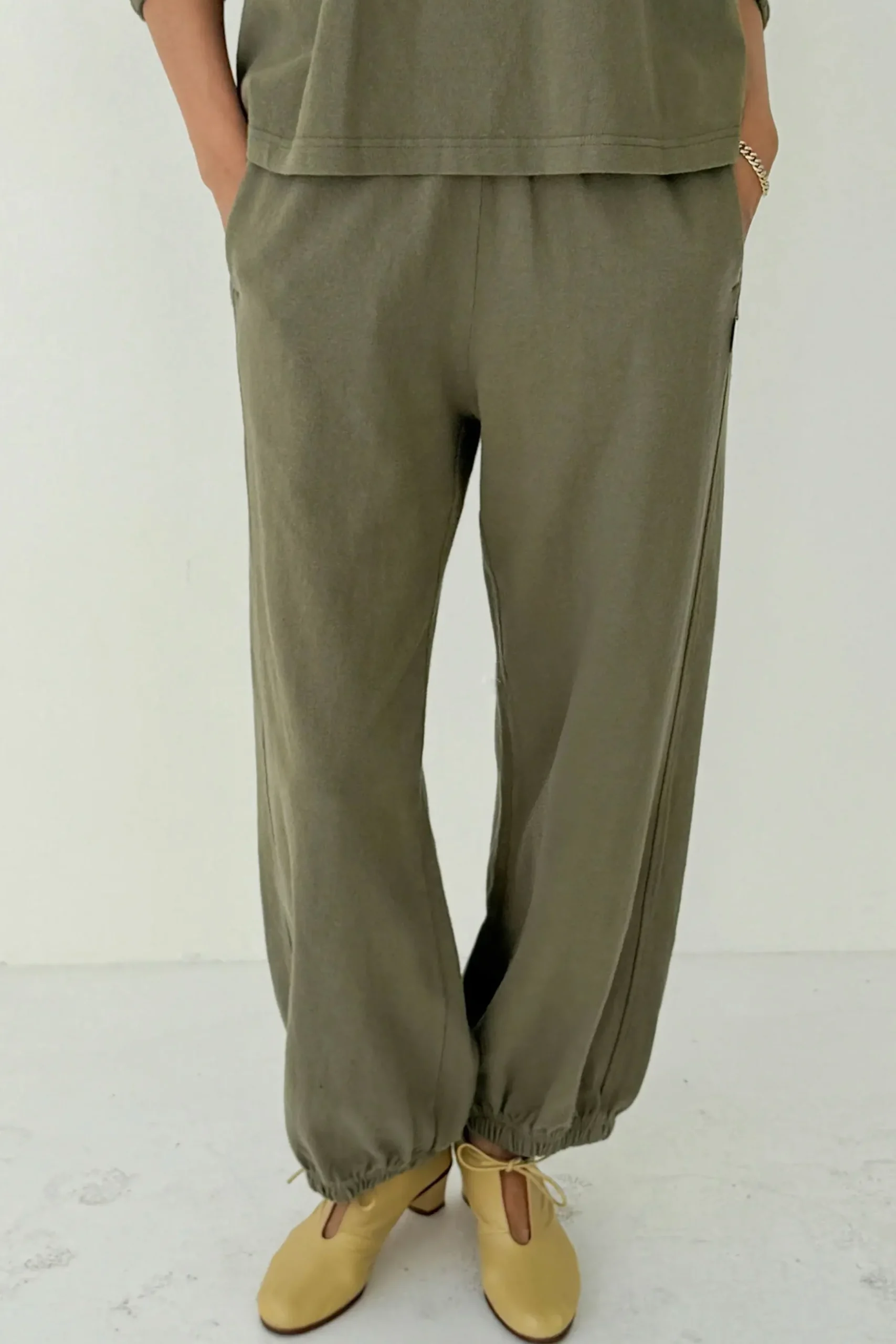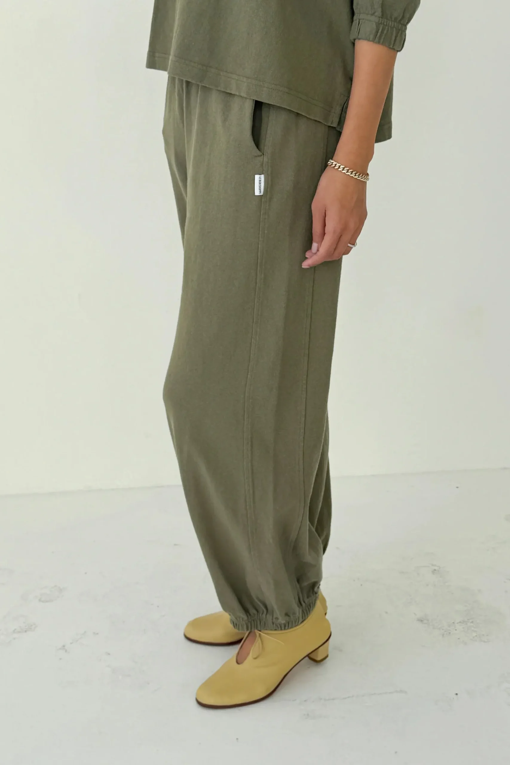 These are the pants we love to live in year round! With an elastic leg opening that pairs with any shoe, comfortable elastic high waist and side slit pockets, this will be your new uniform at home, in the office, around town and even the great outdoors. Gorgeous heavyweight 100% cotton, garment dyed and pre-washed for a rich textured look that is not see-through and does not shrink in the wash!