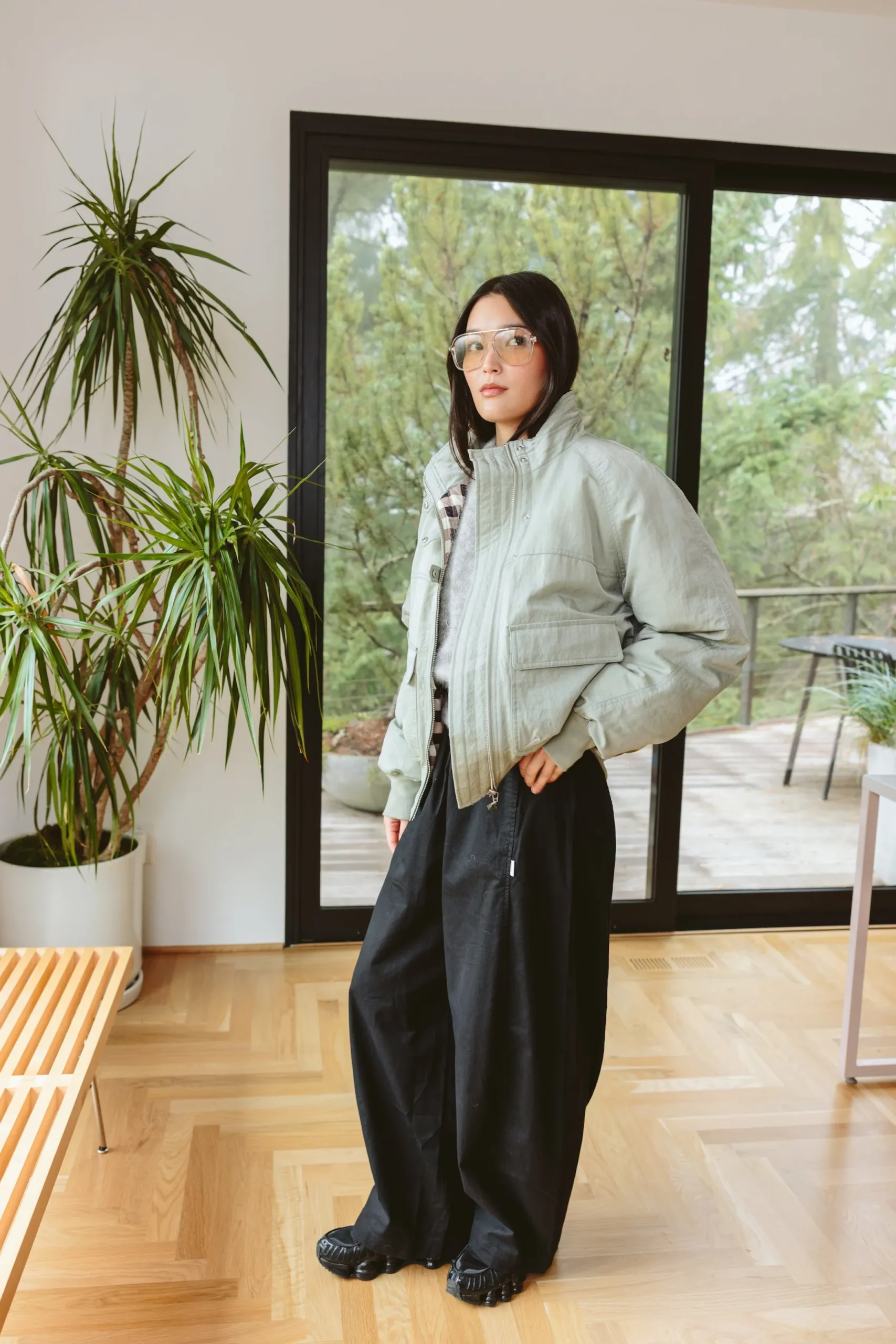 A modern take on a classic silhouette, the Chachi Bomber in Sage cut in a softly structured shape, it’s designed for everyday wear with considered details throughout, from statement hardware to a playful gingham lining. Practical yet polished, this is the layer you’ll reach for season after season. Intentionally designed to be oversized, if you would like a more fitted silhouette, please size down.