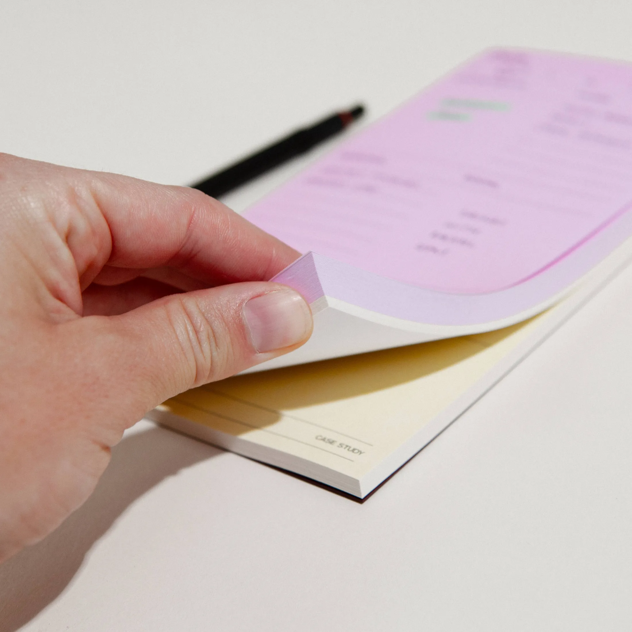 It’s chunky.It’s functional.It’s an all-in-one way to structure your day.Each page breaks the day into four sections: work, appointments, social, and personal, with extra space for notes. Tear off the sheet at the end of the day and start fresh tomorrow. 100 pages – 50 pink sheets followed by 50 butter yellow.+ 4 x 8 inches+ 100 tear away sheets: 50 pink, 50 butter yellow+ Designed and printed in Santa Cruz, CA+ 70lb smooth uncoated paper suitable for ballpoint pens + Thick backing stock in a deep burgundy color