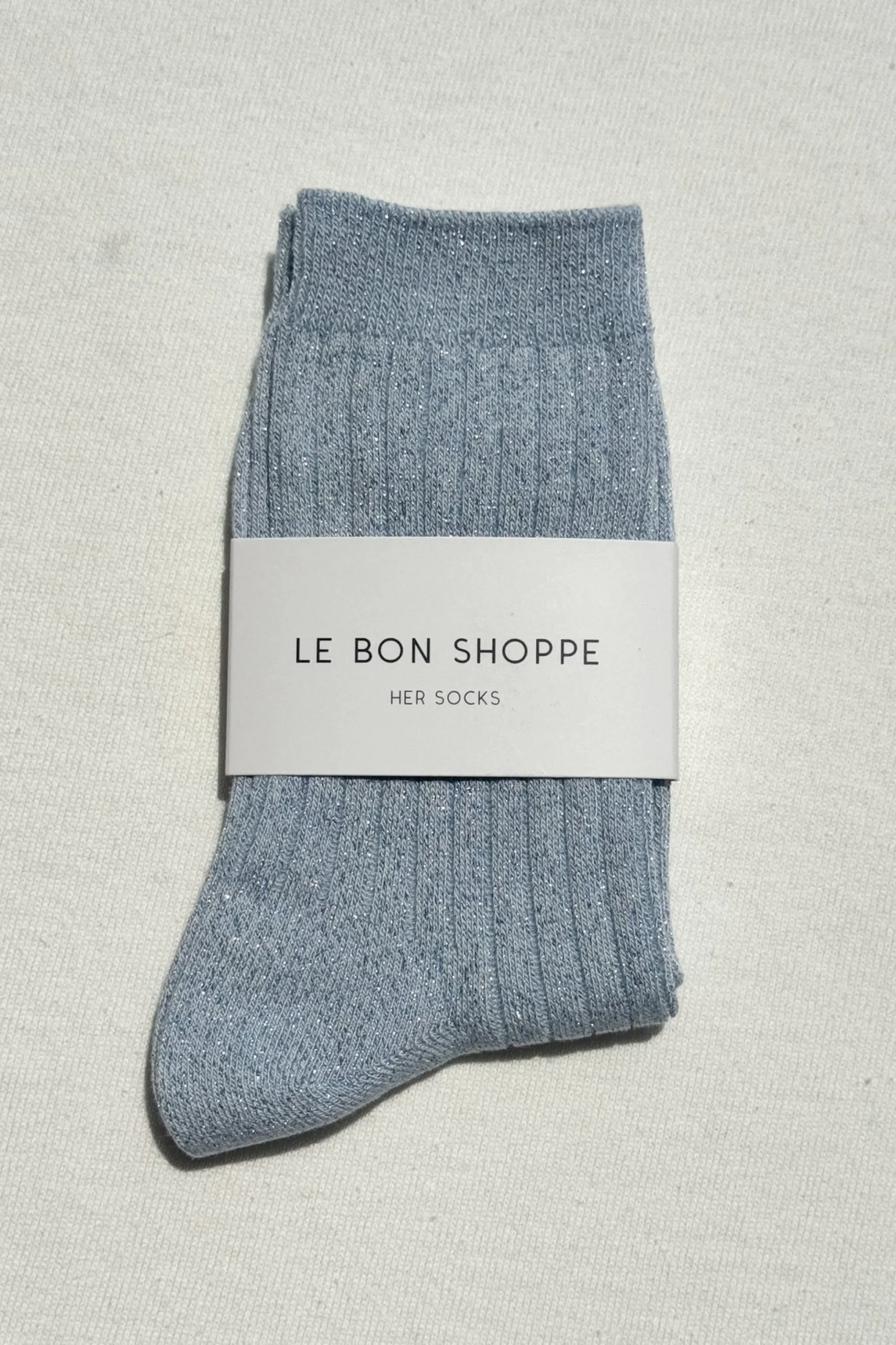 A little sparkle goes a long way with Her Lurex Socks. The glittery version of our OG Her Socks adds a festive element to any outfit. Crafted from a cotton-modal blend, they feature sparkly flecks woven throughout, allowing them to glimmer in the light. Classic ribbed details, quarter-crew length, and shimmery elements make them perfect for days when you need some extra pizazz!