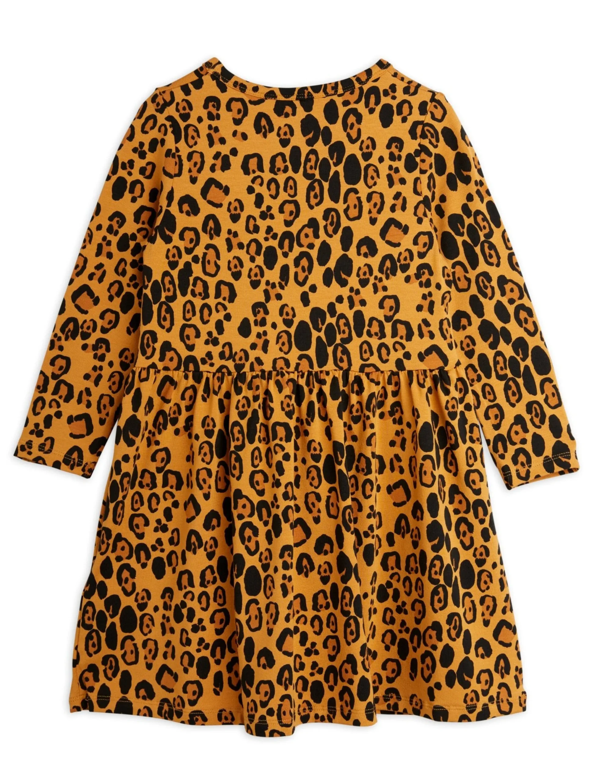 Leopard printed long sleeve dress, made in soft TENCELâ„¢ Lyocell with a hint of stretch for comfort. Featuring a sewn-on Mini Rodini Panda label at the front. The dress is designed with a high waist and a flowy skirt.