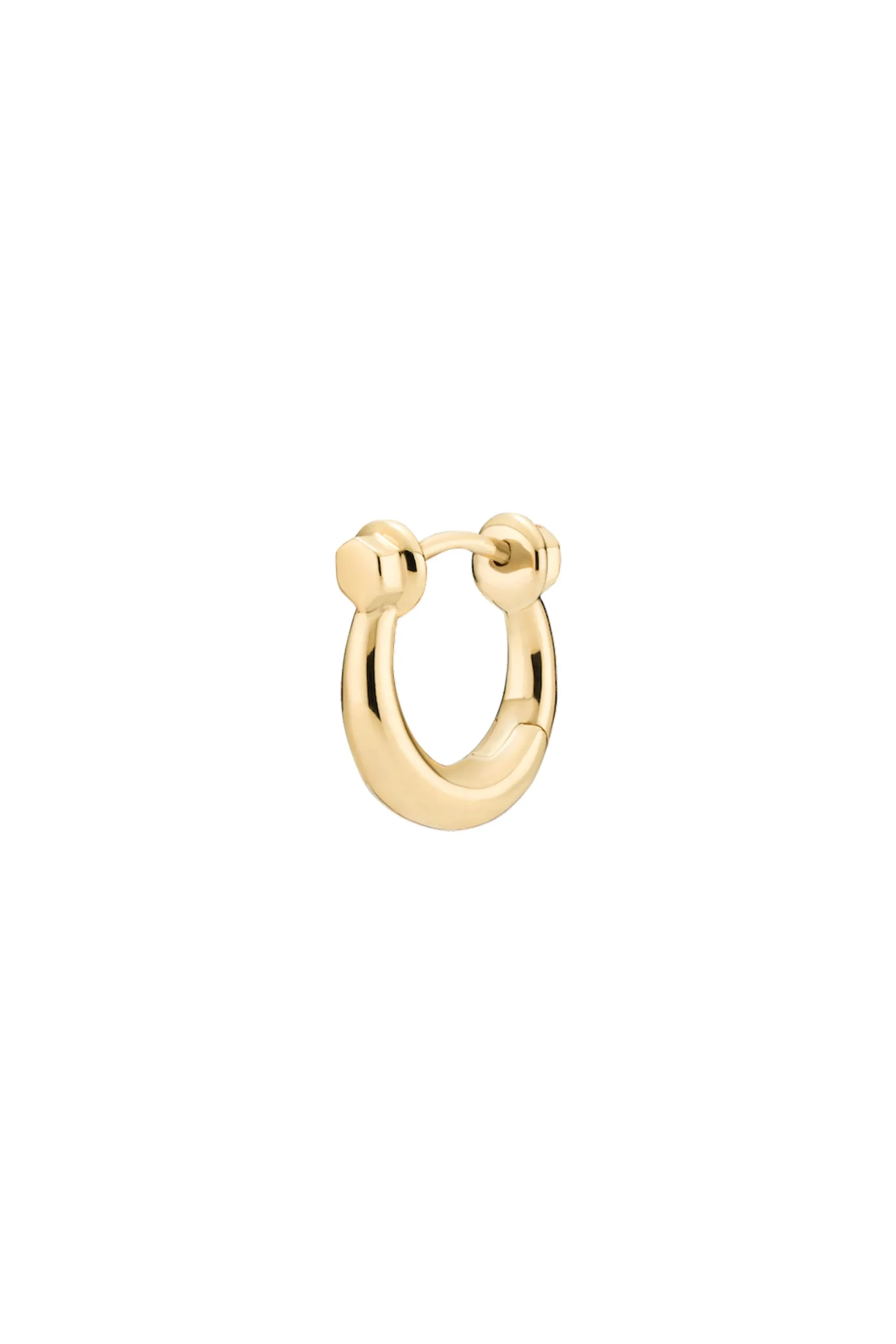 The Malik huggie is inspired by a classic shackle screw carabiner. Wear the different sizes in the same ear for a “waterfall” effect!