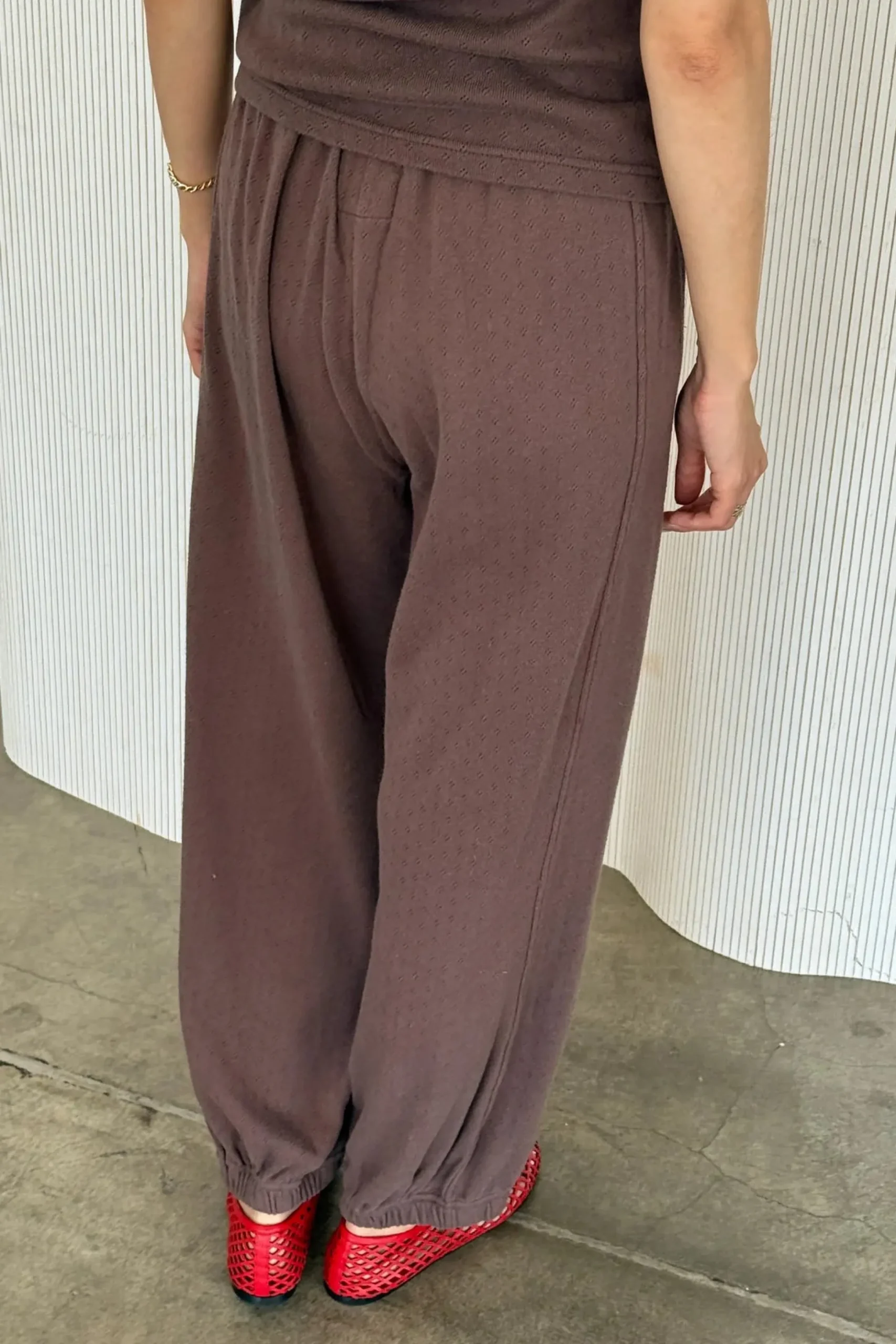 The iconic Balloon Pant silhouette just got cozier. Made from the same ultra-soft cotton pointelle jersey as the Eve Cami—dreamy to the touch with a gentle drape. Designed with an easy elastic high waist, relaxed fit, and gathered ankles that play well with any shoe, they’re finished with slimming side panels and hidden slit pockets for just the right balance of comfort and structure. Whether you’re lounging, layering, or stepping out, these pants were made to move with you.