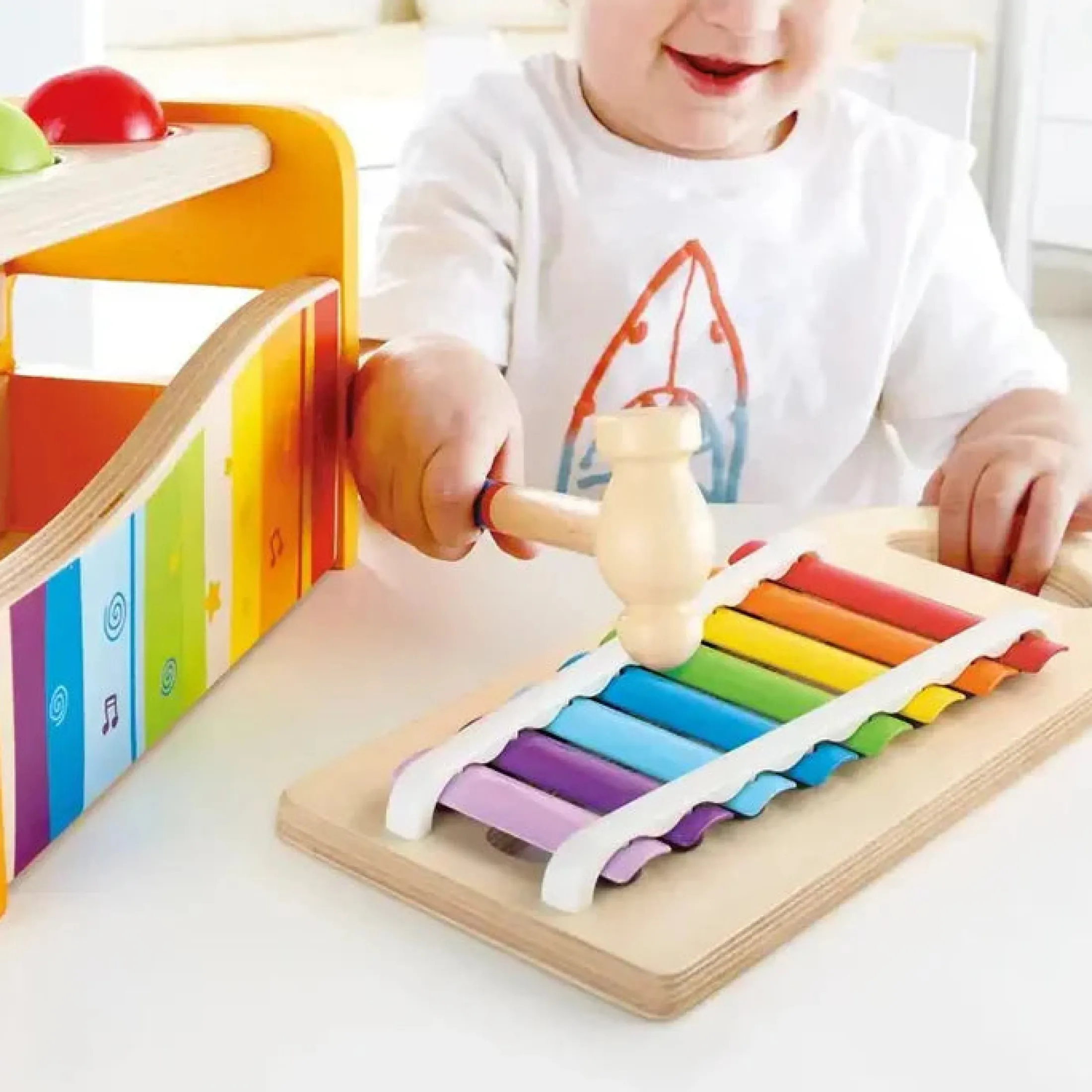 These pounding toys for toddlers, encourage musical development and exploration, audio recognition and play. Durable and child safe, contains a water-based paint and has non-toxic finishes. The winner of the 2018 Cribsie Award for a favorite first musical toy.
