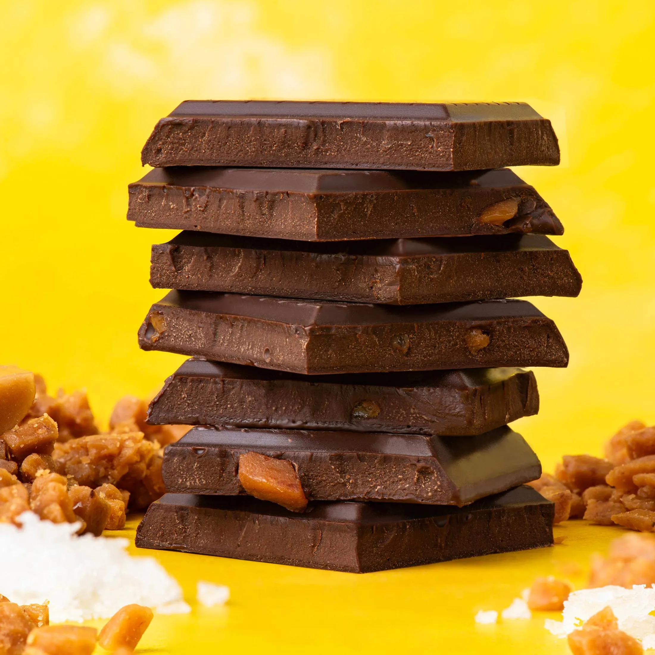 Good couples have a way of balancing each other out. Yes, We’re talking about when Salty met Toffee. Bits of crunchy toffee are layered in a swath of silky dark chocolate. A pinch of Pacific Sea Salt brightens the flavor and checks the sweetness in this dark chocolate toffee bar. Made with organic chocolate. (2.5oz)Explore more from our Seattle (tourist) Collection: Café Latte Crunch, Peanut Butter Roast bars, and gifts like our, Sound of Seattle Bonbon Gift Box.