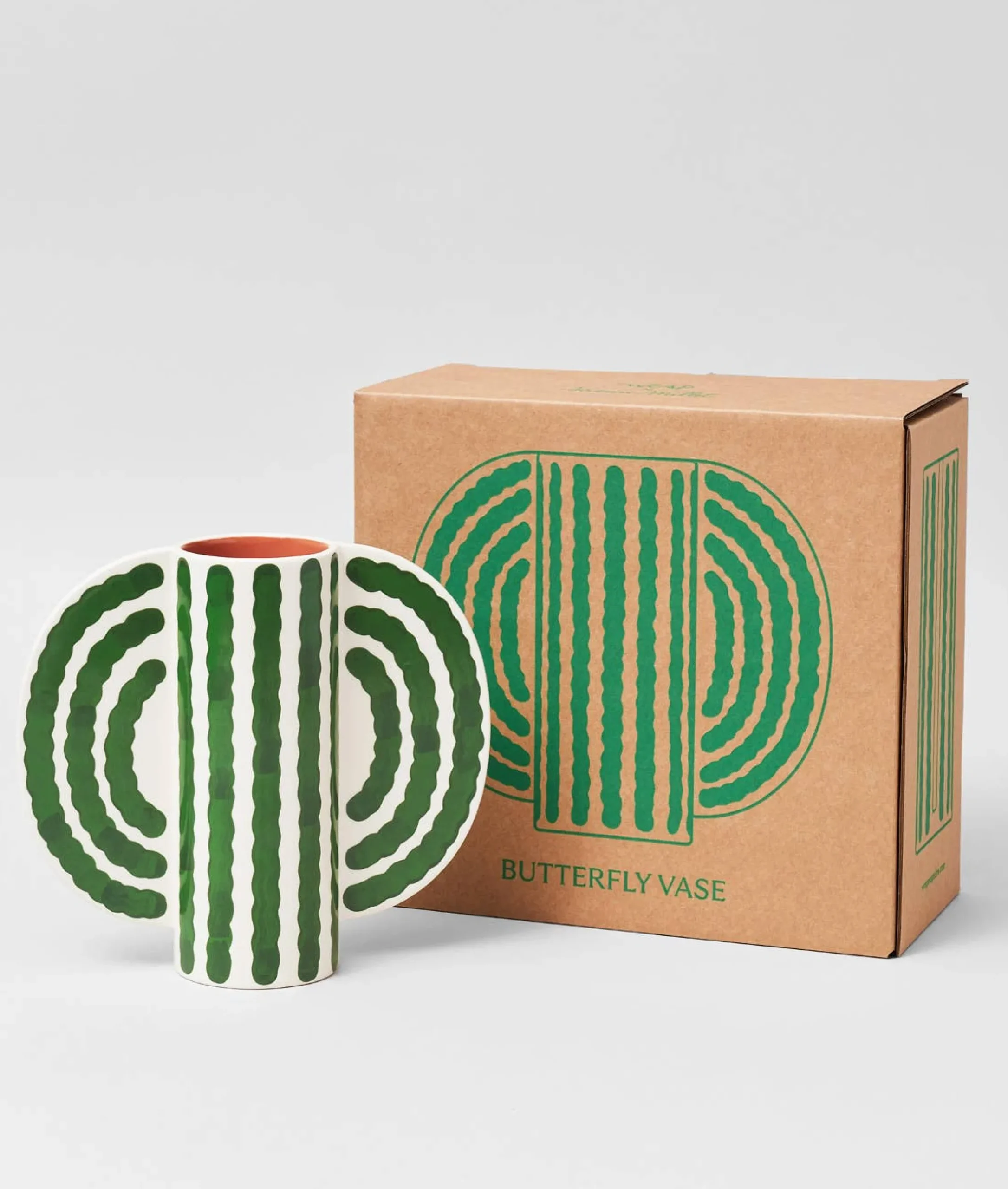An exciting new collaboration between Wrap and French artist and illustrator Séverin Millet – a series of six ceramic ‘Butterfly’ vases designed by Séverin in his distinctive style, and expertly produced in Portugal exclusively for Wrap.
