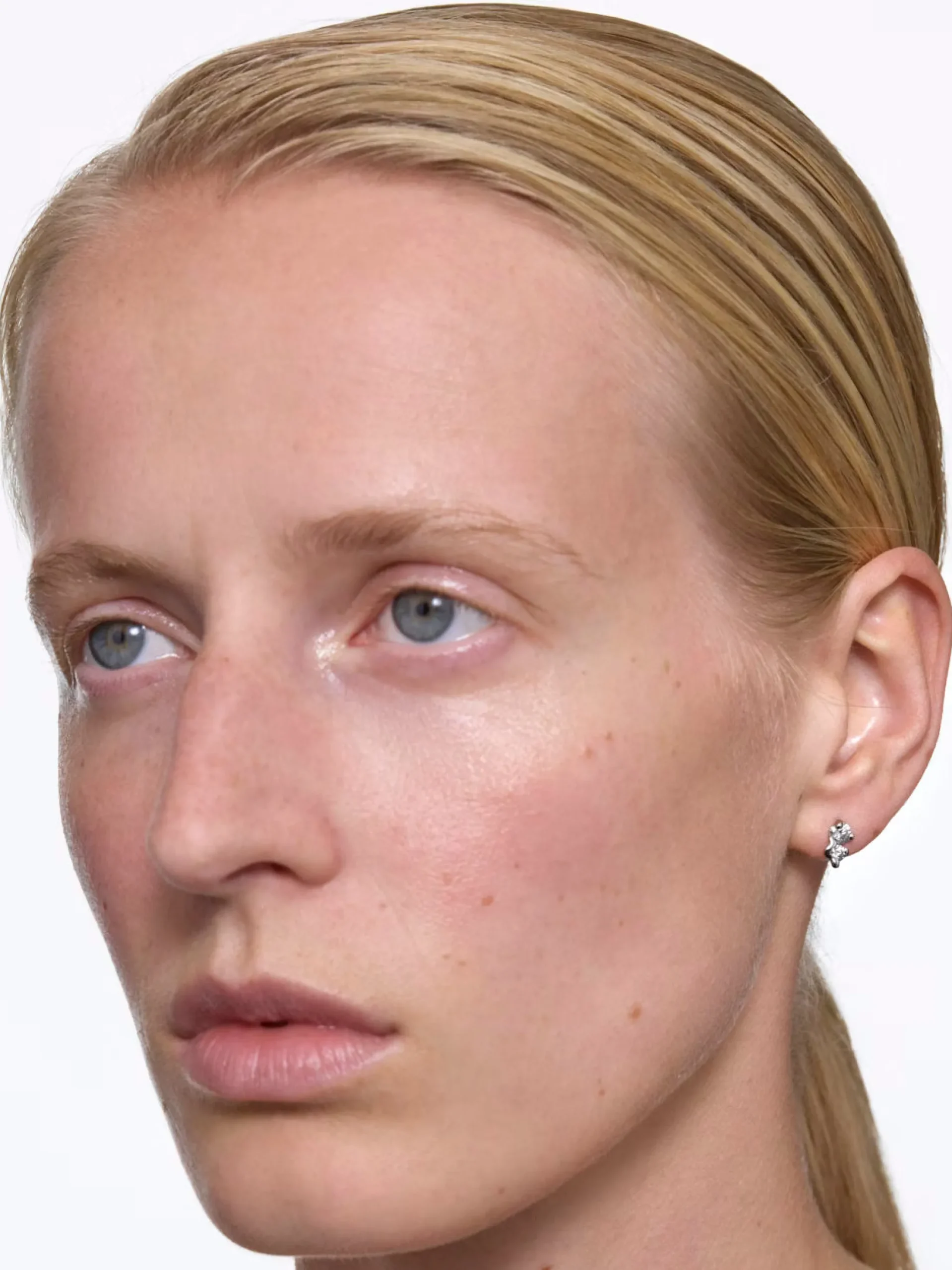 Stud earring with white zirconia in a warped prong setting. Skillfully crafted in recycled sterling silver. Signature bullet back fastening for a luxurious fit.