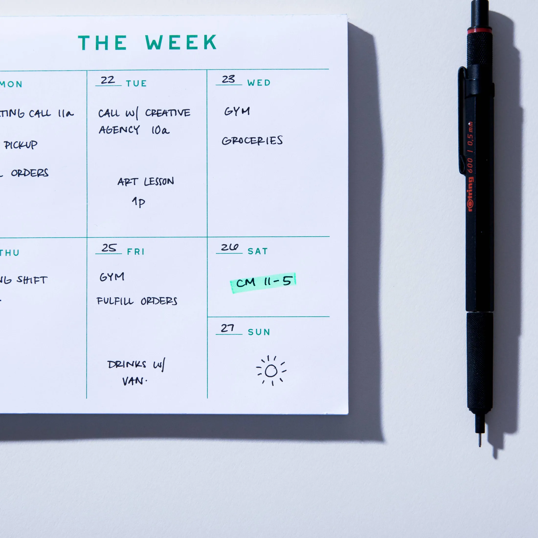 A week-at-a-glance planning system that allows you to visualize and track your weekly goals. Great for a professional or student, this memo block is ideal for writing out reminders, tasks, and notes. You can organize at your own pace with undated pages.Once you’ve completed your week you can easily tear off the sheets to start fresh. Details: * 5×5 inches * 50 tear away sheets * 80lb uncoated paper * Thick backing stock in Marrs Green color * Each pad is packaged individually in recyclable plastic sleeves
