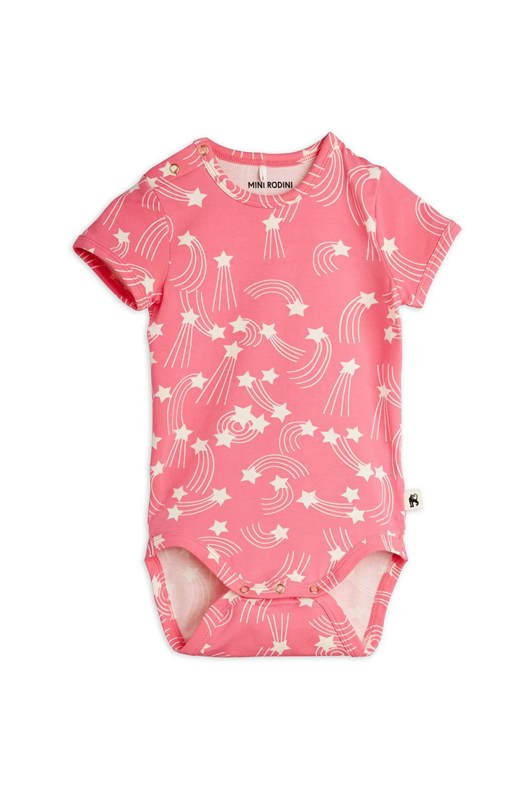 Bodysuit made from 95% organic cotton and 5% elastane for a soft, stretchy feel. Features an all-over Starfall print, short sleeves and soft bindings. Snap buttons at the shoulder and crotch for easy dressing and changing.